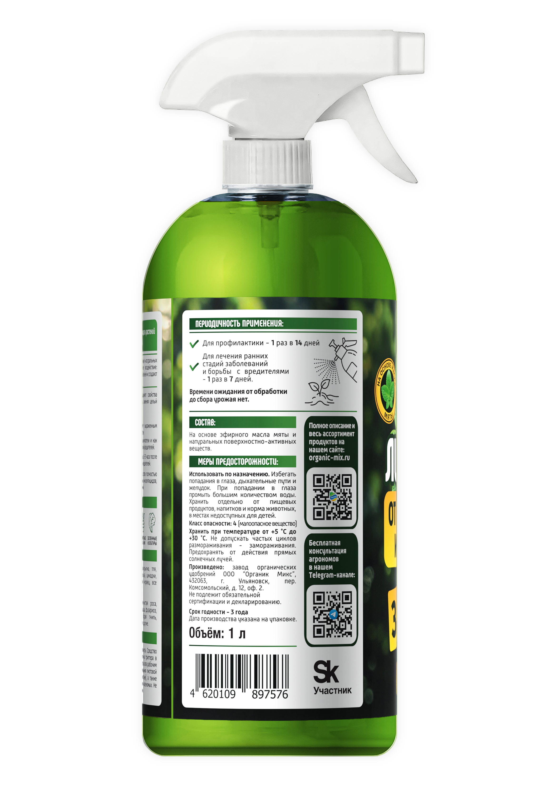 Итог: эфирное масло мяты и ПАВы работают синергично. Масло оказывает мощное инсектицидное и фунгицидное воздействие, а ПАВы усиливают его эффект и параллельно сами уничтожают вредителей. Таким образом, Листочист обеспечивает надежную и многоуровневую защиту растений.