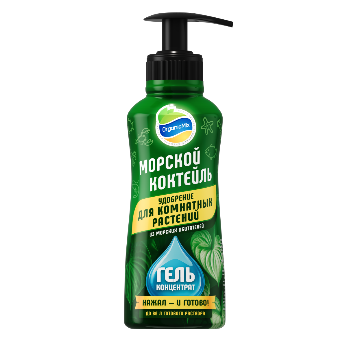 Морской коктейль (гель) для комнатных растений — профессиональное удобрение нового поколения на основе биоактивных веществ морского происхождения для комплексного питания комнатных растений. Содержит аминокислоты, пептиды и микроэлементы, что обеспечивает устойчивый рост, формирование сильной корневой системы, улучшение декоративности листвы и повышение стрессоустойчивости растений.