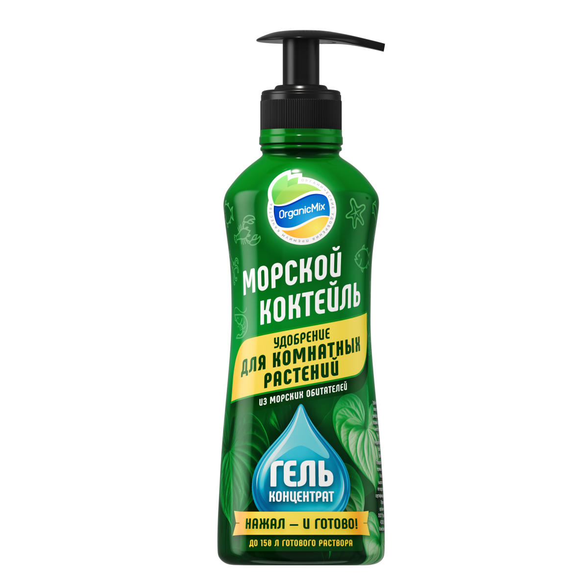 Морской коктейль (гель) для комнатных растений — профессиональное удобрение нового поколения на основе биоактивных веществ морского происхождения для комплексного питания комнатных растений. Содержит аминокислоты, пептиды и микроэлементы, что обеспечивает устойчивый рост, формирование сильной корневой системы, улучшение декоративности листвы и повышение стрессоустойчивости растений.