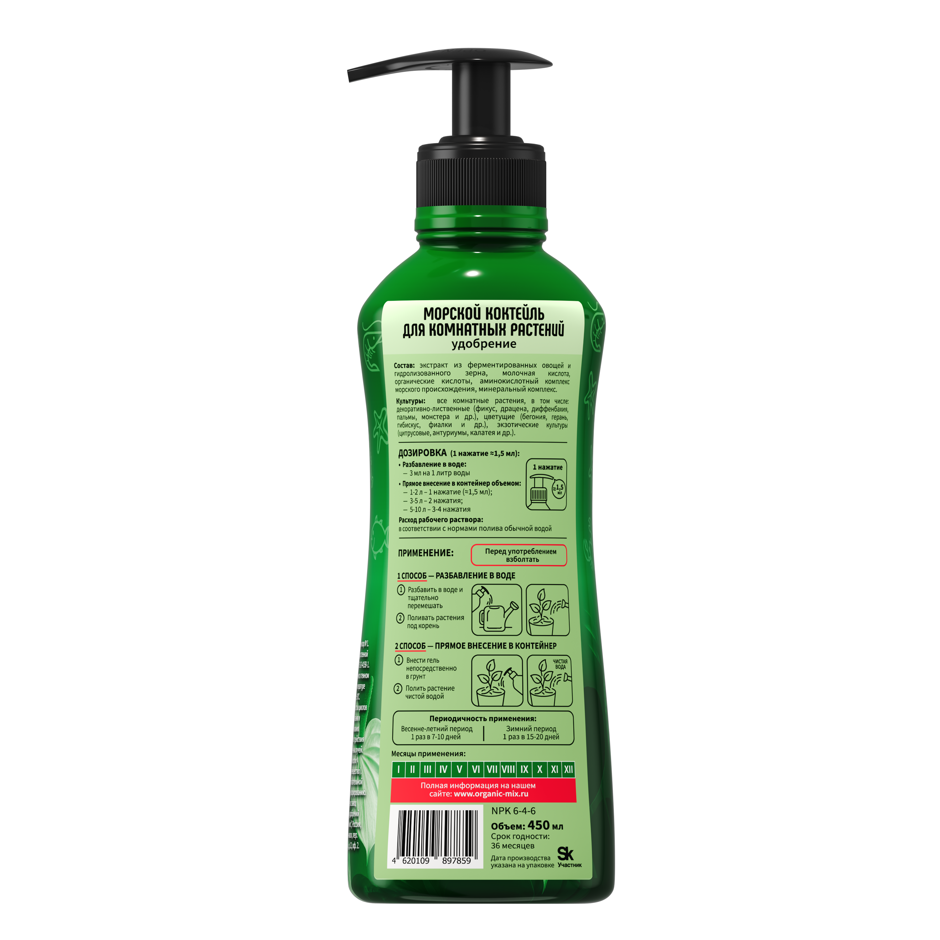 Морской коктейль обеспечивает полноценное питание комнатных растений в условиях ограниченного объёма грунта. Препарат улучшает корневое питание, активизирует обмен веществ и способствует формированию здоровой листовой массы.
