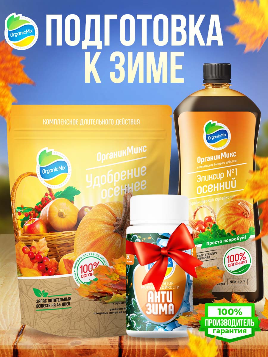 Эликсир № 1 осенний - специализированная комплексная подкормка-дозреватель, с высоким содержанием полезных веществ, фитогормонов, витаминов и антиоксидантов для подготовки растений к перезимовке и дозревания плодов.