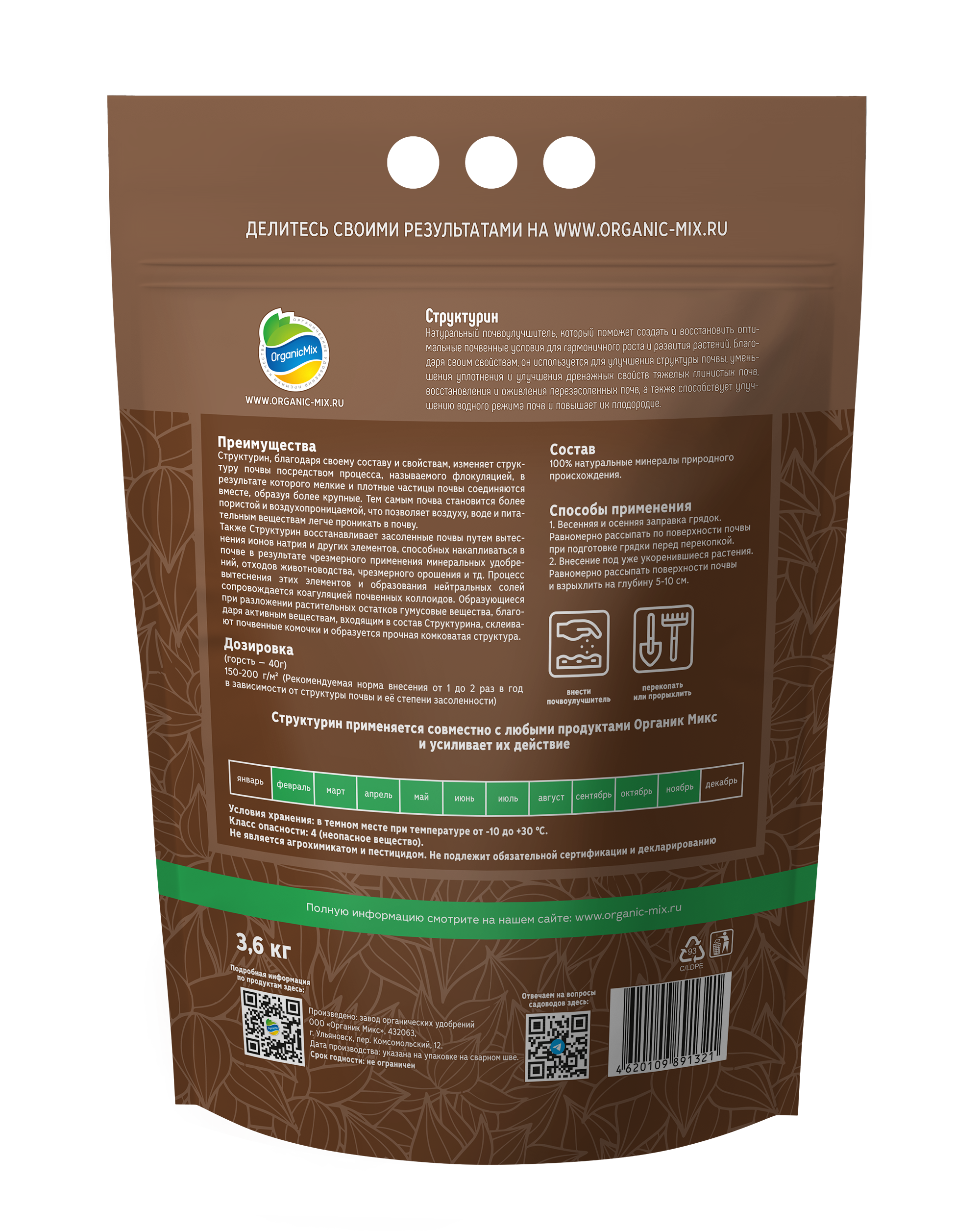Структурин - это натуральный почвоулучшитель, который поможет создать и восстановить оптимальные почвенные условия для гармоничного роста и развития растений. Благодаря своим свойствам, он используется для улучшения структуры почвы, уменьшения уплотнения и улучшения дренажных свойств тяжелых глинистых почв, восстановления и оживления перезасоленных почв, а также способствует улучшению водного режима почв и повышает их плодородие.