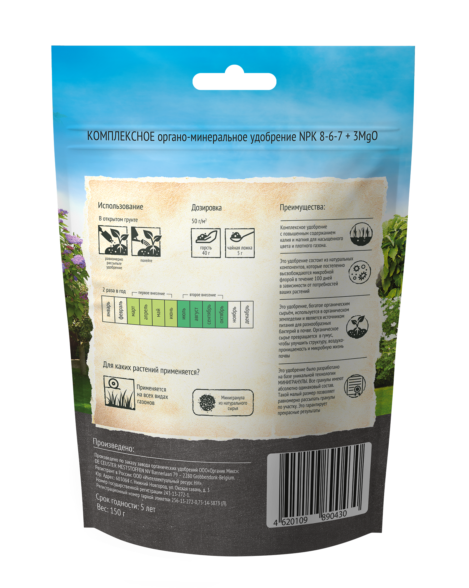 Комплексное органо-минеральное удобрение с повышенным содержанием магния для насыщенного зеленого цвета и густого газона.