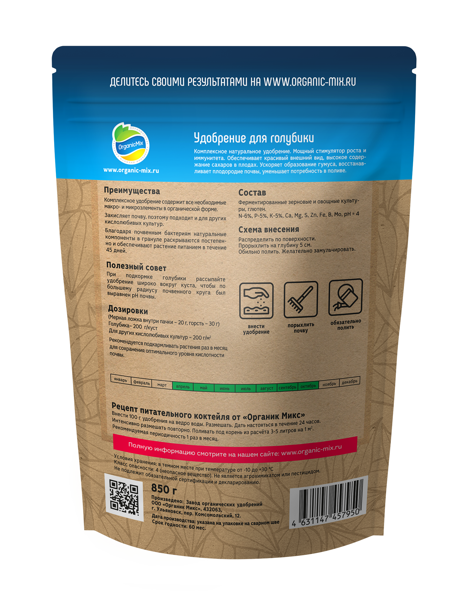 Для взрывного эффекта рекомендуется совмещать с жидким органическим удобрением Органик Микс «Эликсир №1» для голубики.