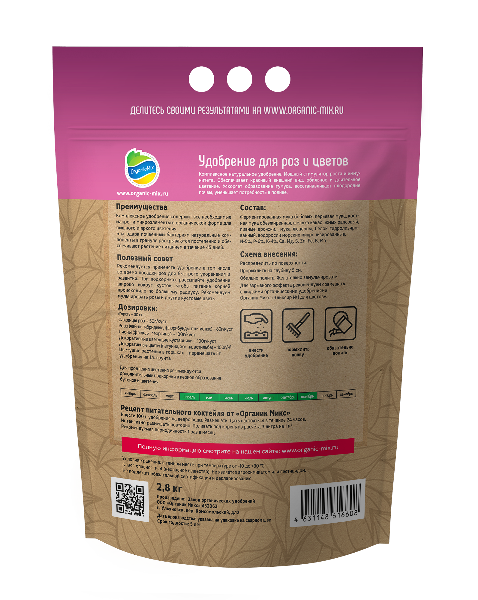 Для взрывного эффекта рекомендуется совмещать с жидким органическим удобрением Органик Микс «Эликсир №1» для цветов.